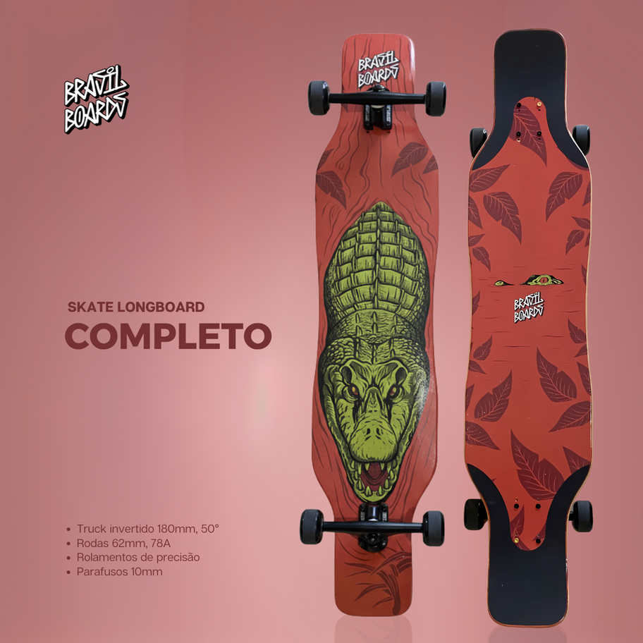 Apresentamos o novo Skate Longboard Jacaré-Açu 42" da Brasil Boards: resultado de anos de pesquisa, testes e inovação em materiais.